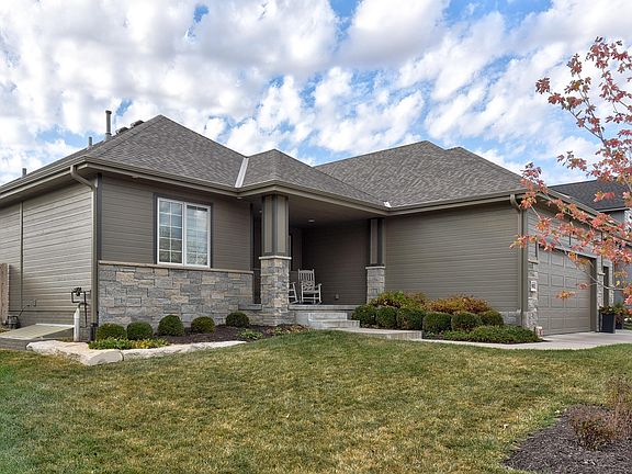 Covered patio, Entertainment/Exercise Room, Community Pool all headline this quality construction 5-bedroom, 3-bathroom Ranch in the sought-after Stratford Park community in Bennington. Built in 2017, this immaculate property boasts an oversized 3-car garage, exquisite landscaping, and meticulous attention to detail. Step inside to an open and inviting floor plan featuring a thoughtfully designed kitchen, spacious living areas, and a laundry room conveniently connected to the primary bedroom closet. The fully finished basement is an entertainer's dream, complete with a theater room, large kitchen and tons of space. Clean, comfy and current - this one is a must see today!