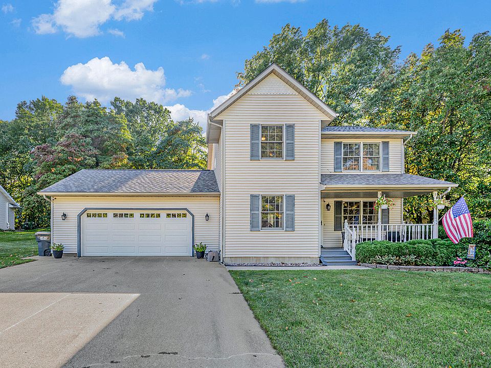 Desirable Stratford Hills home! This 3 bed, 2.5 bath home features over 2000 sq ft of finished living space. Stratford Hills is a well established neighborhood with trails and mature trees. The home is conveniently located to both I-94 & US-131, schools, trails, lakes, shopping, restaurants, & so much more. The home has been well maintained with a new roof 2023, brand new furnace, brand new AC, new garage door, & newer appliances. The home feels inviting as you pull up with nice curb appeal & a front porch. Inside, you will find the living room complete with a gas fireplace, eating area, & kitchen. There is a slider to the sun room/screened in porch that overlooks the wooded backyard. The kitchen has a snack bar & newer stainless steel appliances. The main floor also has a living space that could easily be an office or den space along with a half bath. Upstairs features the primary bedroom suite with a large walk in closet & attached bath. There are 2 more bedrooms & the 2nd full bath. The finished basement has great storage & a rec room with a bar. The backyard has a patio & is full of wildlife. This is a spectacular home that includes a 1yr home warranty for peace of mind!