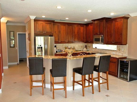 Stunning, move in ready 5 bedrooms, 3 baths, 3-car garage home situated on a cul-de-sac. Chef's kitchen with 42 cabinets with crown molding, under cabinet lighting, granite counter tops, tile backsplash, under cabinet window, snack bar, stainless steel appliances, high hat lighting and a family dining area. Huge master suite with sitting area, tray ceiling and his and hers walk in closet. Elegant master bath with dual sinks. walk in shower and a garden tub. The covered and extended patio overlooks a spectacular pool with waterfall and private backyard. This home boasts a formal living room, formal dining room, tile laid on the diagonal and crown molding. Canyon Lakes is located close to shopping, Restaurants, A rated schools, the Florida Turnpike and the beach.