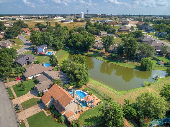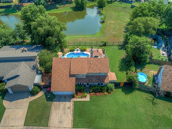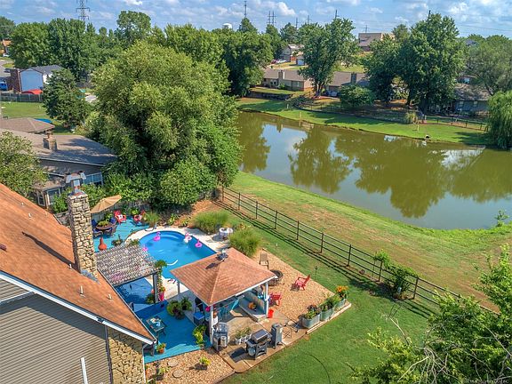 Stunning 3 or 4 bedroom in Owasso schools with a pool and cabana, great for entertaining! Concrete flooring, formal dining area, breakfast nook, open kitchen with granite, master bedroom down with private bath with walk-in shower and a jetted tub, 3 bedrooms up, new vanity and tile in hall bathroom, theatre room with projector and platform seating and chairs that's included with the house. Gorgeous in-ground pool with tons of patio space overlooking the neighborhood pond.