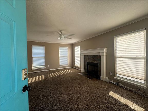 - Features: Carpet, Ceiling Fan(s), Fireplace