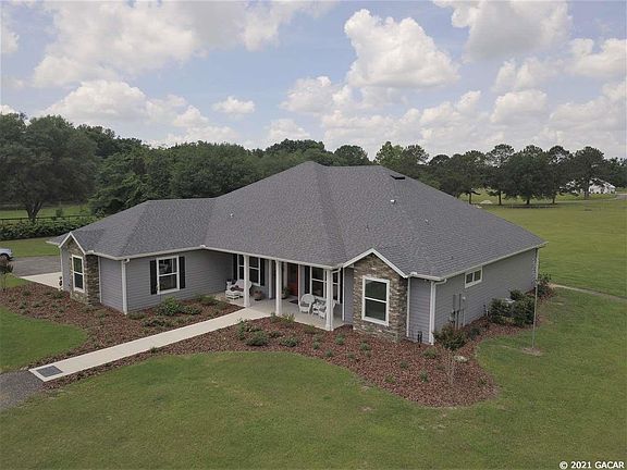 This property is special! What a fabulous location. Only minutes to go to Gainesville or Alachua, but in the Country. Centrally located between Publix in Alachua, Jonesville or 39th Ave. This Gorgeous Home is almost new and immaculately maintained. The entrance road is a sand and is great for riding horses. The shaded tree lined canopy reduces your stress as soon as you turn off of the paved road. It's 3/10 of a mile to your gated home. This is County Living at it's finest! From the High Ceilings in the Great Room to the stunning Kitchen you are sure to be impressed.Your new home features a walk through Master Shower that is open at each end with Multiple Shower Heads. The large screened Lanai features a granite top cabinet and sink. The backyard area has a custom paver fire pit with seating areas to enjoy roasting marshmallows or just sitting out and watching the stars for year round fun.A newer insulated 14 x 32 shed on the property which gives you plentyof extra storage and includes a workshop. The large inside utility area has custom cabinets and plenty of room to fold clothes. Perimeter is fenced and horses are allowed!
