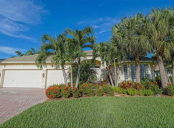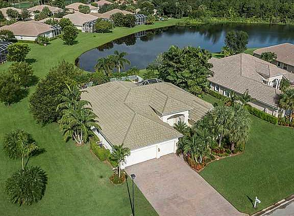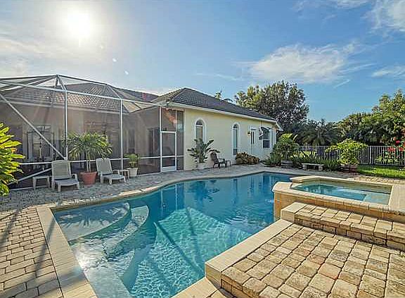 **LAKEFRONT ESTATE POOL HOME** Premier Living in the Florida Club! This spacious estate home is 4 bedroom, 3 bath with an office in a premier golf course community. Perfection is this spacious Master suite with an elegant master bath that has it all; oversized soaking tub, extended double vanities with granite throughout, separate shower and an abundance of natural light. The kitchen is highlighted with SS appliances and a colorful tiled backsplash that opens up to the large family room ideal for entertaining guests and being with family.The relaxing screened in lanai with sitting and grilling area that opens up to a beautiful pool with spa/hot tub surrounded by brick pavers and a one of a kind lake view make this home the epitome of ideal Florida living!
