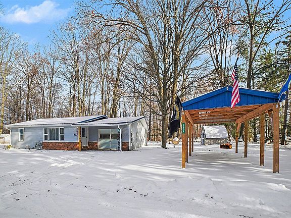 This two-bedroom home features an open floor plan, a one-stall attached garage, carport, oak kitchen cabinets, updated carpeting, fenced in backyard, and a recently installed metal roof. Shared access to WE-E Lake, a no wake, private fishing lake within walking distance. Located off US-10 between M-66 and M-115, this property is well suited for an Up North getaway or year-round living.