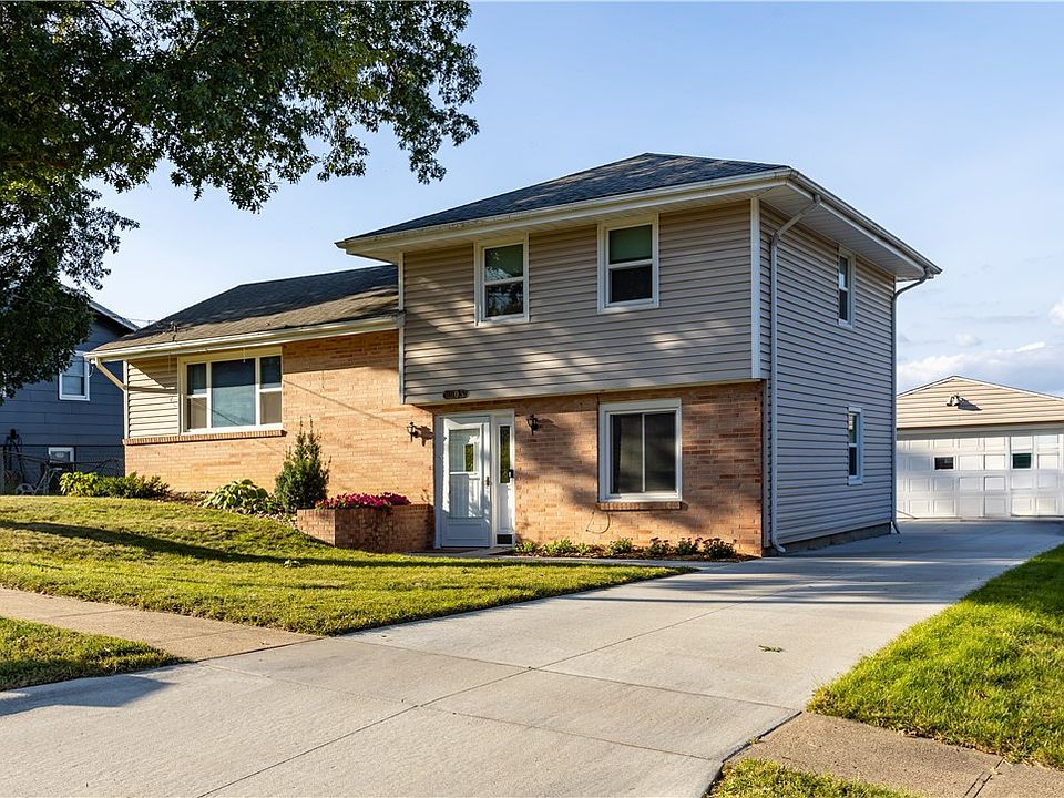 Gorgeously updated 4 Bed, 2 Bath backing to Valerius and Walker Johnston Park! This beauty boasts a STUNNING kitchen remodel featuring soft close cabinets, quartz countertops, farm-style sink, and butcher block breakfast bar. NEW engineered hardwood flooring throughout the main floor complimented by fresh paint and TONS OF NATURAL LIGHT. Upstairs bath has NEW countertop, luxury vinyl tile, tub surround, and fixtures. HUGE primary bedroom w/original hardwood floors & double closets. Additional bedrooms ft updated carpet, newer paint & new fixtures. Need more space? WALKOUT BASEMENT is perfect for a rec room! Updated vinyl windows and low-maintenance vinyl siding for peace of mind. NEWER furnace (2021) and updated water heater. OVERSIZED 2 car garage to protect your vehicles from the IA elements. LARGE fenced backyard w/firepit, plus direct access to Walker Johnston Park. Conveniently located near the interstate for easy commutes, shopping centers & restaurants. Schedule a showing today!
