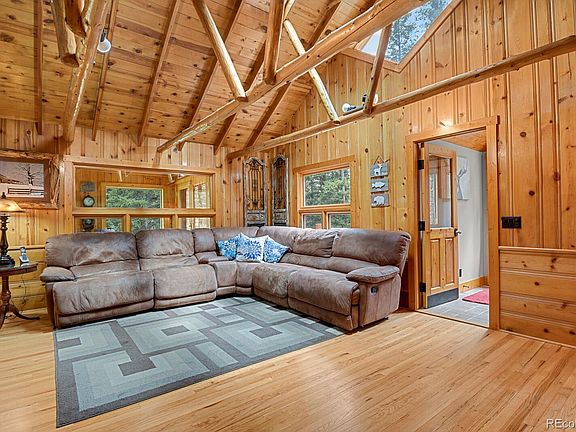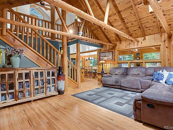 Unforgettable Creekside Escape with Modern Comforts on 7.2 Acres! Welcome to a truly special log home nestled in the exclusive gated community of Secluded Acres—offering serene privacy and the kind of setting that instantly puts you at ease. Originally built in 1956 and fully remodeled in 2000, this 2-bedroom, 2-bathroom home includes a spacious loft that can serve as a 3rd bedroom, home office, or guest suite. Vaulted ceilings, log beams, and a stunning floor-to-ceiling stone fireplace create a dramatic great room, while a wall of windows frames the forest and fills the space with natural light. Cozy up on snowy evenings or enjoy watching elk, moose, foxes, and hummingbirds pass by in warmer months. Thoughtful updates ensure comfort year-round: new well pump (2024), roof (2020), LeafGuard gutters (2023), heat tape (2024), and a Generac whole-home generator (2023). High-end finishes include granite countertops, hardwood floors, pine cabinetry, and neutral tile throughout. The oversized carport and matching log-style storage shed maintain the home's charming aesthetic. Step outside to one of the decks and listen to the soothing creek—your daily soundtrack in this peaceful escape. Though it feels a world away, you're just 5.5 miles from both Evergreen and Conifer, with shopping, dining, and amenities a quick 20-minute drive away. Located near the Upper Maxwell Falls trailhead, this home is more than a place to live—it's a launch point for adventure and a gateway to the mountain lifestyle. A gated entrance provides peace of mind.