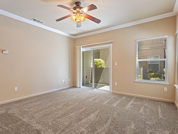 The professionally managed gated condominium includes a washer and dryer, dishwasher, microwave, refrigerator, stove, ceiling fan, decorative blinds, crown molding, central air and heat. This is a downstairs one bedroom unit. The pictures are from a similar unit. Coming up in early March $45 application fee per adult $600 deposit on approved credit $65/monthly for water & sewer flat fee additional to rent Qualifications: 2.5 times the rent 6 months of verifiable employment 6 months of good rental or mortgage history Good credit history Davis Oaks Condominiums 8905 Davis Road Stockton, CA 95209 Please call for more information, office open Mondays, Weds. and Fridays 3 pm - 5 pm, Saturdays 9 am-2 pm We offer 12, 8 or 6 months lease. Unit is non-smoking. ESA is allowed with current documents. One parking space is assigned per unit. Resident pays for all utilities except garbage.