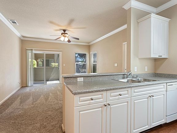 The professionally managed gated condominium includes a washer and dryer, dishwasher, microwave, refrigerator, stove, ceiling fans, decorative blinds, crown molding, central air and heat. This is a one-bedroom unit on the second floor. The pictures are from a similar unit.