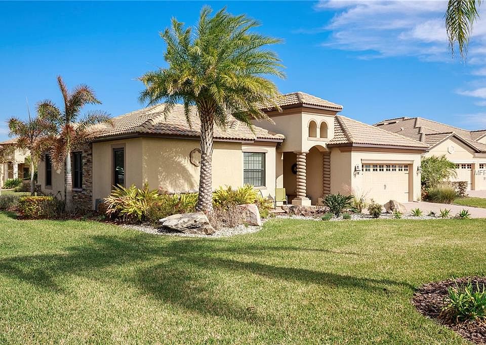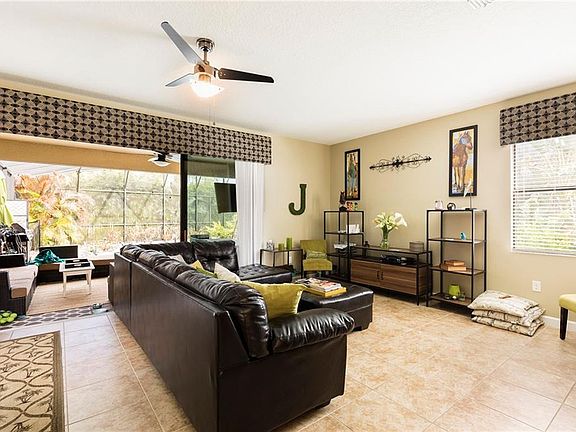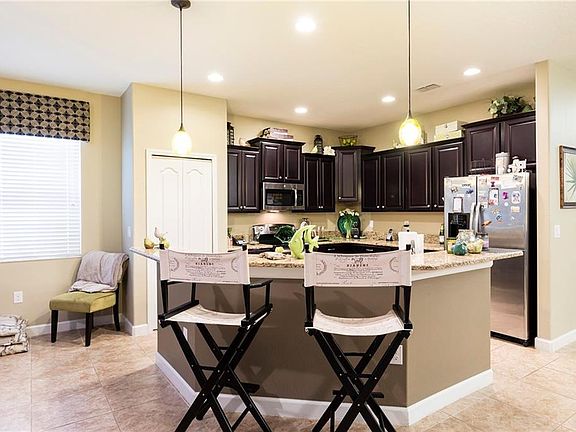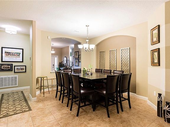 VERY FEW HOMES HAVE A VIEW LIKE THIS!!! The only 5+ bedroom ranch in the development with amazing views of the Disney Fireworks every evening - situated in a cul-de-sac on the 18th hole. Located on a larger than normal lot in a cul-de-sac, this home has a custom large pool with waterfall and hot tub, over-sized pool screen - reinforced for high winds; safety fencing for pool area, all professionally landscaped for privacy including professional lighting package for both front, back and side yard. Open floor plan with 5 large bedrooms, 3 full bathrooms, 1 extra-large den that the owner currently uses to sleep 4; separate small family room that the current owner currently uses as a TV den (wired high on the wall). The master bedroom is separated from the other bedrooms for privacy and has sliding doors to the pool area and two walk-in closets. The master bathroom contains a large soaking tub, double sinks, the master walk-in shower is amazing! All kitchen appliances have been upgraded, including stainless steel dishwasher, refrigerator, stove and washer/dryer. 2 ½ car garage with built-in shelving, separate attic space, ladder-access for attic space within the home. The Country Club Community at ChampionsGate offers residents great family-friendly resort-style amenities - including a swimming pool, lazy river, splash pool, and fitness center with aerobics studio, sports courts for tennis and volleyball, a community center, amazing community events and more!