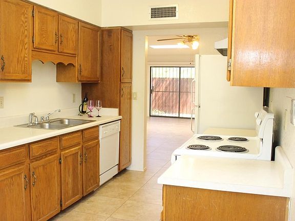 Nicely appointed 3 bedroom townhouse in great east area features 18'' tile throughout, skylights, ceiling fans, lots of natural lighting. Open floor plan with higher ceilings provide spacious feel. Lovely tiled shower in master.Lots of storage space with pantry, linen and cost closets. Small private back yard/patio area. Community features pool and walking paths.