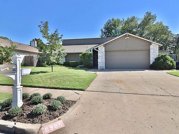 One-Of-A-Kind! Phenomenally landscaped home w/private pond to enjoy. Close to everything. 50' back porch retreat & storm shelter in garage. 4-5 Bed, 2 bath - 2 Liv., office. Dbl sided F.P. Lovely lg. curved bar area seats at least 6 open to 1st living view of pond. Realtor Related to Owner. Refrig-Washer-Dryer negotiable