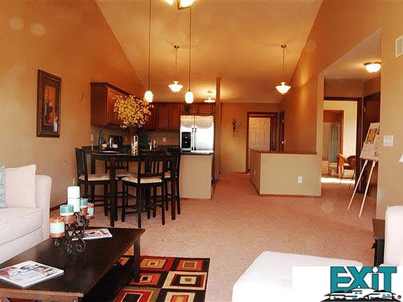 Welcome to Prairie Homes' luxuriously appointed 2 bedroom, 2 bath area townhome. This uniquely designed open floor plan features vaulted ceilings throughout the kitchen, dining and living room areas. Rich granite countertops, stainless steel appliances (including side-by-side refrigerator, range/oven, microwave and dishwasher) and birch cabinets with crown molding give the look and feel of a home twice the cost. Also included are full side-by-side washer and dryer and solid surface bathroom vanity countertops. Other features include brushed nickel door hardware, double garage with opener, full sod, sprinklers, low maintenance vinyl siding with stone belt line, nice deck, and so much more. Full basement is ready to finish. $75 per month association dues cover lawn care, snow removal and refuse service. Call today to view model of this home.
