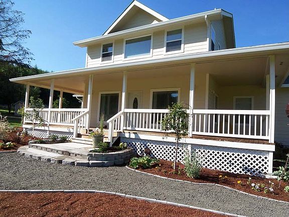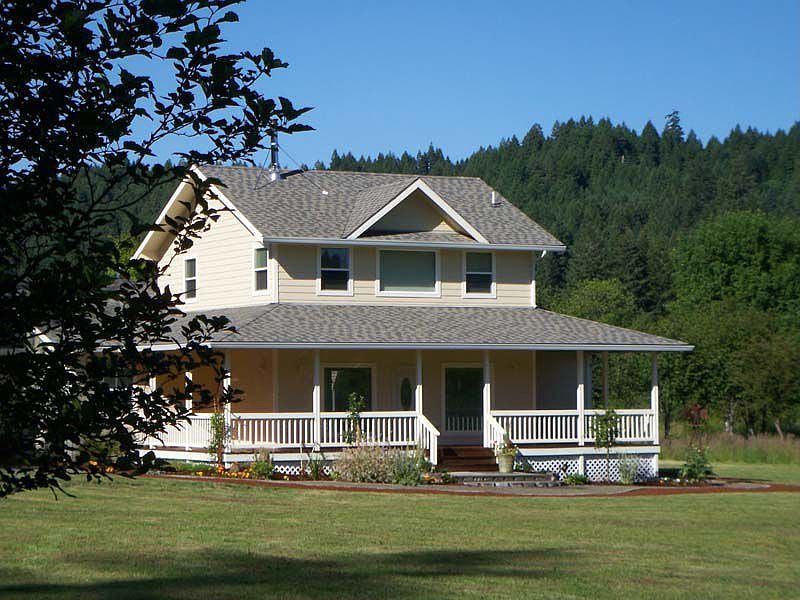 Beautiful modern farm style, two story home on 20+ parklike acres. Over 700sq ft of covered porches for outdoor living. Open floor plan with 9ft ceilings, and over sized windows with mountain view. Kitchen has professional series stainless steel appliances, granite, large eat at island, large walk-in pantry. Informal dining room with French doors leading out to back porch living. Wet bar is equipted with beer tapper, 48 bottle wine cooler and ample storage below with glass door cabinets above. First floor large master suite boosts sitting area, jetted tub, corner glass shower with private commode room, and walk-in closet. Second story gathering room with vaulted ceilings and multiple windows for view of property and surrounding mountains, also two large bedrooms and full bath. 25ft x 25ft garage, generator ready box, sink, storage and machinery room for furnace and water heater. Mostly level acerage bordered along back by creek for recreational use. Property perfect for atv or horse riding, with horse trails nearby. Professional landscaping around house with trees, shrubs, flowers, brick borders, dry rock walkways, red mulch for easy maintanece. RV parking and hookup. 8ft x 24ft shop/barn/storage building. Well rated at 17gpm, excellent water, water softner, all housed in matching building. Neighborhood Description Quiet farm neighborhood. Houses far apart to afford much privacy. Neighbors friendly and willing to help at a moments notice. It's like a private little valley.