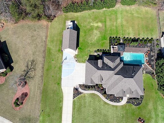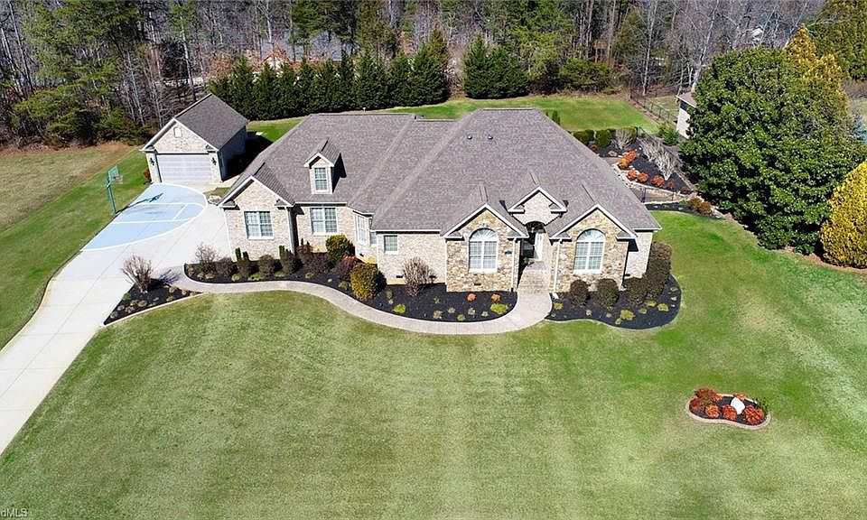 4 bd + bonus room, 3 1/2 bath on almost 1 acre flat lot. Kernersville address in Northwest Guilford school district. 18x34 inground saltwater pool with walk-in steps, diving board, auto cleaner, and pool security alarm. Outdoor fireplace, gazebo, and covered patio overlooking pool area. Refinished (2024) natural hardwoods on main level, carpet upstairs in bonus and 4th bedroom. Primary bedroom on main with large en suite bathroom, jetted tub, separate shower, 2 walk-in closets. Double sided fireplace in between primary bedroom and bathroom that can be utilized with gas or electric. 3 multi-zone HVAC units. 3 car attached garage, 2 car detached garage/workshop wired with 30AMP/240 volt. Refrigerator, washer, dryer, pool equipment and supplies remain. Central vacuum, whole house water filtration system, transferrable termite bond, No HOA.