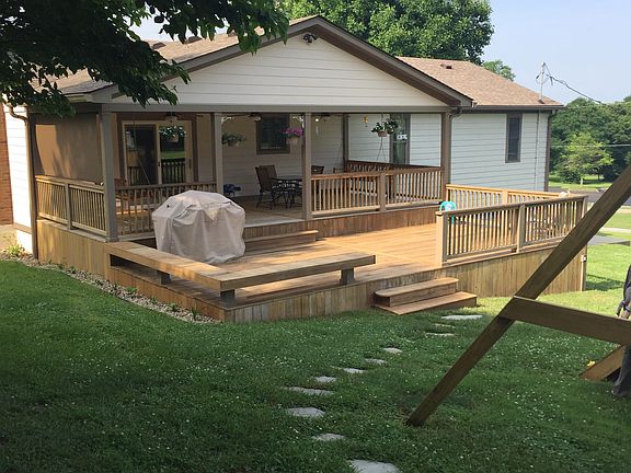Updated home in Oldham just past the county line. 4 bedrooms (possible 5th), 3 full baths, and side walk-out finished basement. Great floor plan for gathering with spacious living room open to the dining area and kitchen. Newly updated kitchen with granite countertops, ample chocolate colored kitchen cabinets, GE slate appliances purchased just 2 years ago to remain. Convenient laundry / mud room off the kitchen which accesses the 2 1/2 car garage has ceramic tile, utility sink, and shelving. GE profile touch screen washer & dryer to remain as well. The first floor offers 4 bedrooms and 2 fulls baths. Nice master suite and both baths have been updated as well. Solid hardwood floors, crown molding, and LED recessed lighting add to the beauty of this home. You will love the lower level just as much with so many possible uses. There is a nice family room with fireplace, an exercise room, storage room, and bonus room with walk-in closet. The workshop is any handyman's dream but this space could easily be made into a 5th bedroom with plenty of daylight from the windows and doors on the walk-out side of the basement. Separate in-law suite in the lower level should be possible if needed. Other updates include: Roof 2012, Windows 2009, Heating / Air 2016 (per seller). You may just love the outside better than the inside of this home. Gorgeous 2.25 acre lot with large 2 tier deck and covered patio, 3 ceiling fans and recessed LED lights, stone walkway leading to the above ground pool. Swimming pool has attached deck with trex railing and security gate (pool may be removed if buyer requests). Super convenient location just minutes from the Gene Snyder, I-71, the Paddock shops, restaurants, and hospitals.