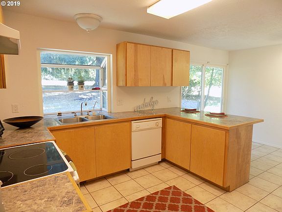 One level home sits on 2.34 private acres near Fern Ridge Lake. Light and bright Living room with skylight and maple flooring. Updated kitchen countertops, cabinets and tile flooring. Newer Septic system, roof and front deck. Fruit Trees, garden area, fenced yard.