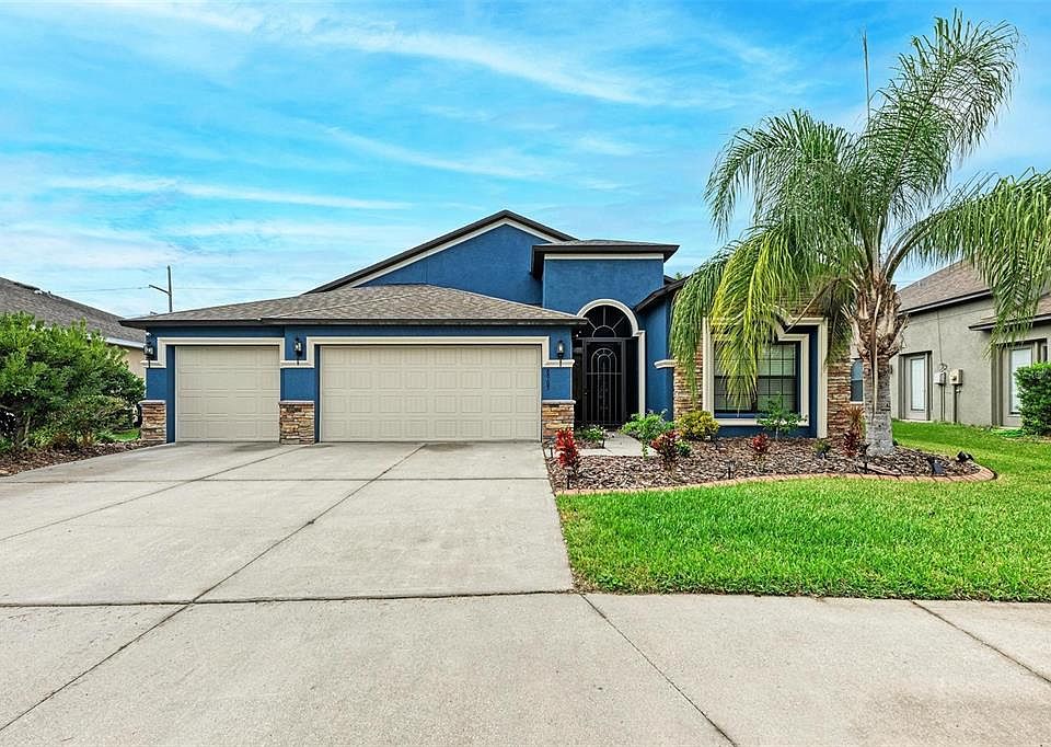 Welcome to this rare move in ready home located in the highly desirable neighborhood of Fairways at Imperial Lakes. Built in 2015, this beautifully maintained 2,864 -square-foot-home offers 4 bedrooms, PLUS DEN and 3 full baths!! Lush PRIVATE preserve view and crystal clear, SALT WATER, SOLAR HEATED POOL!! Upon entering the home through elegant French doors, the soaring ceilings, large windows and loads of natural light enhance all the features of this gorgeous property!! From there, you continue into the large dining room - perfectly sized to accommodate all family members and guests with ease!! The bright, airy kitchen is full of charm and style, solid wood cabinetry, stainless steel appliances, plenty of granite counter space and breakfast bar!! Flow from the kitchen right into the open GREAT ROOM featuring beautiful sliding glass doors to the private pool area with fountain bowls, for a relaxing background sound. You'll relax for hours under sunny blue skies or, chill in the shade of a generously sized undercover area - these features are just part of what makes the Florida lifestyle so wonderful!! There is also a fenced in area at the back of the house for the furry family members! The master bedroom offers an en-suite bath with dual sinks, soaking tub, fully tiled shower and his and hers large walk-in closets. As this home features a true split floor plan, the other 3 bedrooms are set away from the master and offer quiet and privacy for all. To top it off, the home has a 3 Car garage and an additional large storage closet. You are sure to love this layout that offers open concept living and an abundance of storage space throughout the home. The Fairways at Imperial Lakewood offers an 18-hole golf course, only a short golfcart ride away! NO CDD and LOW HOA FEES. If you are commuting for work, you are right at the I-75 triangle connecting you north to Brandon or Tampa, or just over the bridge to St. Petersburg, or south to Sarasota and beyond! Room Feature: Linen Closet In Bath (Primary Bedroom).