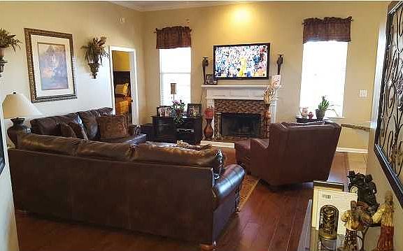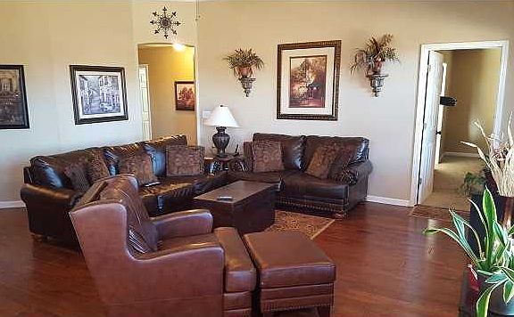 DEER CREEK 4 Bedroom 2 Bath open floor plan 1 owner home. This area is highly sought after and convenient to shopping and dining. Community have many features club house, jogging trails, gym, ponds, play ground and swimming pool. This house has in ground irrigation, covered patio, privacy fenced back yard, a true 2 car garage. Home has lots of natural light and many extras. Formal dining room has chair rail, wood flooring and box ceiling. Kitchen has stainless steel appliances, fridge will remain with good purchase price. Kitchen has under cabinet lightening,glorious granite countertops, with breakfast bar and breakfast area. Family room has wood floors, gas log fireplace with glass tile and recessed lighting above, also has surround sound system in ceiling. Home has a split floor plan. Laundry room has utility sink and shelving. Main bedroom Is very spacious with walk in closet, main bath has double sink, separate toilet area, garden tub, and separate shower,deep linen closet and recessed lights. House has been painted