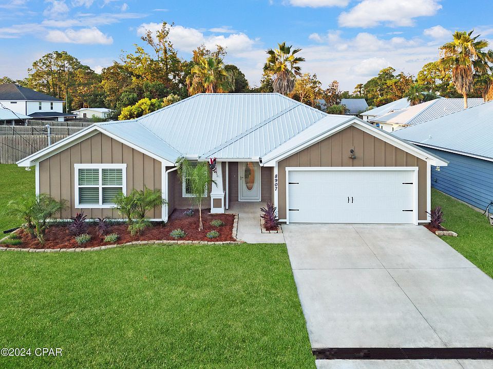 Recent upgrades include plantation shutters throughout home, a $25k stand-up tub with water jets, a custom security system you can control remotely, and palm trees in the backyard. Built in late 2018 with high-quality materials like a metal roof and hardy board siding, this home is as durable as it is beautiful. Your perfect home is waiting for you!