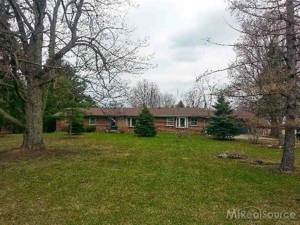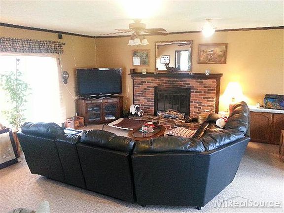 This Ranch sits on 6+ acres of beauty and privacy. Includes 24'x32' pole barn with cement floor. Very nice pond ,hot tub stays. Natural gas! Home is updated and nice: granite countertops and oak cabinets in kitchen Full baths remodeled Antique French door entry to family room. Newer windows. Waterproofed, warrantied basement. furnace '14 98% with new ac.