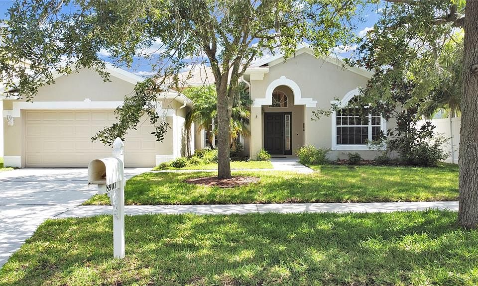 Seller motivated!!! Located in the prime neighborhood of RIVER CHASE, this beautiful home features 4 bedrooms plus a den/office, 3 bathrooms and a two-car garage. This spacious home offers an open floor plan with vaulted ceilings. Upon entering the home, a grand FOYER opens into the FORMAL dining room and living room. The kitchen comes equipped with 42 " maple cabinets, closet pantry, and a breakfast bar that opens into the spacious family room. A grand master suite offers soaring ceilings and an oversized walk-in closet. The luxurious master bathroom features an oversized GARDEN TUB, a separate SHOWER with glass enclosure, double vanities showcasing wood cabinets. The spacious guest bedrooms feature a Jack and Jill bath. Enjoy a cup of coffee on the fabulous lanai overlooking the peaceful pond. Freshly painted on the outside with Emerald Rain self-cleaning paint. Perfectly located within a few minutes of the Veteran's Expressway, Citrus Park Mall, A rated schools, and Super Target, close to restaurants & shops. No CDD fees. Easy access to shopping, restaurants, Tampa International Airport, and beautiful beaches.
