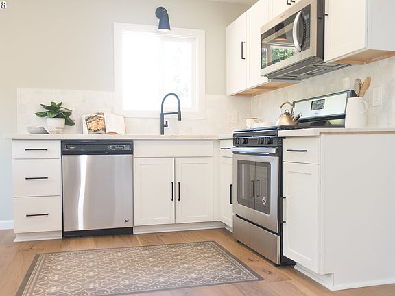 Fully renovated mid century Ranch with huge lot close to Rocky Butte and across from Hancock Park. Everything has been remodelled. Plumbing, electrical panel, gas HVAC, windows, kitchen, bath and all flooring, doors and millwork. Large fenced backyard. [Home Energy Score = 7. HES Report at https://api.greenbuildingregistry.com/report/hes/OR10053891-20180724]