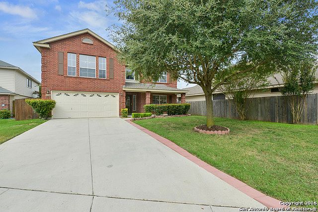 Beautiful 5 bdrm, 3 full bath, 2 car garage, located minutes from bases. Secondary bdrm & full bath down, crown molding, surround sound in family rm, cover front & back patio w/ceiling fan, gourmet kitchen with breakfast bar overlooks family room, spacious master retreat w/separate shower & garden tub, large walk-in closet. Pre-plumbed for water softner. Enormous pantry & laundry room. Backyard backs up to greenbelt for extra privacy. Roof replaced 07/2016. Carpet replaced 8/2016 . Neighborhood park nearby