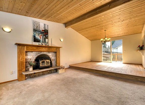 Vaulted pine ceilings, refinished wood flrs and frplc round out the open main level. Family room w/ new gas fireplace and sliders to the pool & spa w/ newer pumps. Fenced yard with a deck, space to entertain, garden and relax. The eat-in kitchen feat refinished cabinets and ss appliances. A new tile tub surround and vanity were just installed in the main bath. Master suite feat double closets incl a walk-in and updated spa like bath. Comes with a 1 year home warranty inc pool/spa equip!