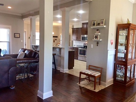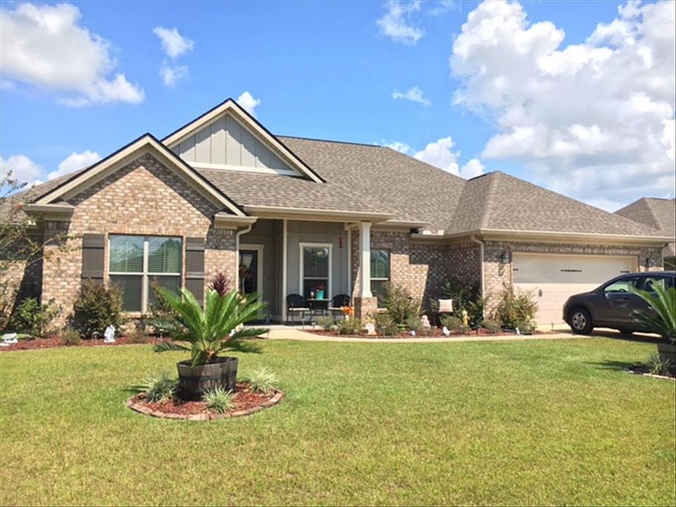 This better than new Truland home is the popular Macon floor plan in Brookhaven. Spacious and open floor plan with four bedrooms, 3 baths, with tons of upgrades and details throughout. Gorgeous hand-scraped wood floors, high ceilings, lots of trim details, built-in mud room cabinet, stove plumbed for gas hookup, upgraded appliance package, and walk-in closets in every bedroom. Exterior features include whole-house gutters, metal shed, fully fenced with two gates, extra concrete patio and 8x8 paver patio, garden pond, and mature landscaping. Conveniently situated between Highway 98 & County Rd 13, and within walking distance to Daphne Middle School and Al Trione Park.