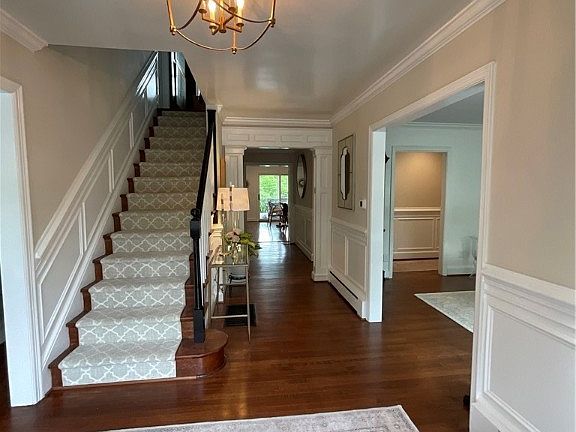Gorgeously classic brick home has been masterfully renovated from top to bottom. Elegant formal living and dining rooms with custom millwork. Great room with vaulted ceiling, wet bar, ice maker and beverage fridge. French doors lead you to an amazing covered porch with gas fireplace. Sun filled family room with gas fireplace is open to kitchen. Stunning chef's kitchen and walk-in pantry w/marble counters, island and top of the line appliances. Custom pocket doors open from kitchen to large covered rear deck. Perfect for outdoor entertaining. First floor primary with walk-in closet & laundry closet with stack washer/dryer. Beautiful marble master bath with soaking tub, double vanities and marble shower. Second has a sitting area, 3 spacious bedrooms each with a new custom designed, private bath. Basement has a family room with fireplace, work-out room, full bath with shower, laundry room with full size washer/dryer and a full kitchen. Mud room located just off the garage. Covered patio is just outside the basement family room. Outdoor fire pit has natural gas line. Fenced rear yard. Irrigation in front yard. Whole house generator.