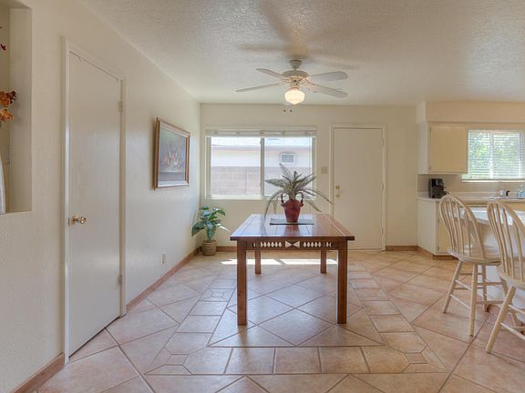 MOVE-IN READY Charming 3 BR/2 BA NE Heights Bungalow in Sandia High School District! Seller has made over $9,000 in upgrades in the last 3 years - Furnace 2011, Water Heater and Evaporative Cooler 2013, Stucco and Windows 2014. Windows has lifetime warranty. Large lot with backyard access. Detached, extra deep 1 car garage. Covered breeze between home and garage offers private front porch. Eat-in kitchen with gas cooktop, breakfast bar and big pantry. Updates include: ceramic tile and hardwood floors. Wood stove in living room will help save on winter energy bills. Large backyard is a blank canvas and not having a Home Owners' Association allows for a wide range of possibilities. Convenient NE Heights location.
