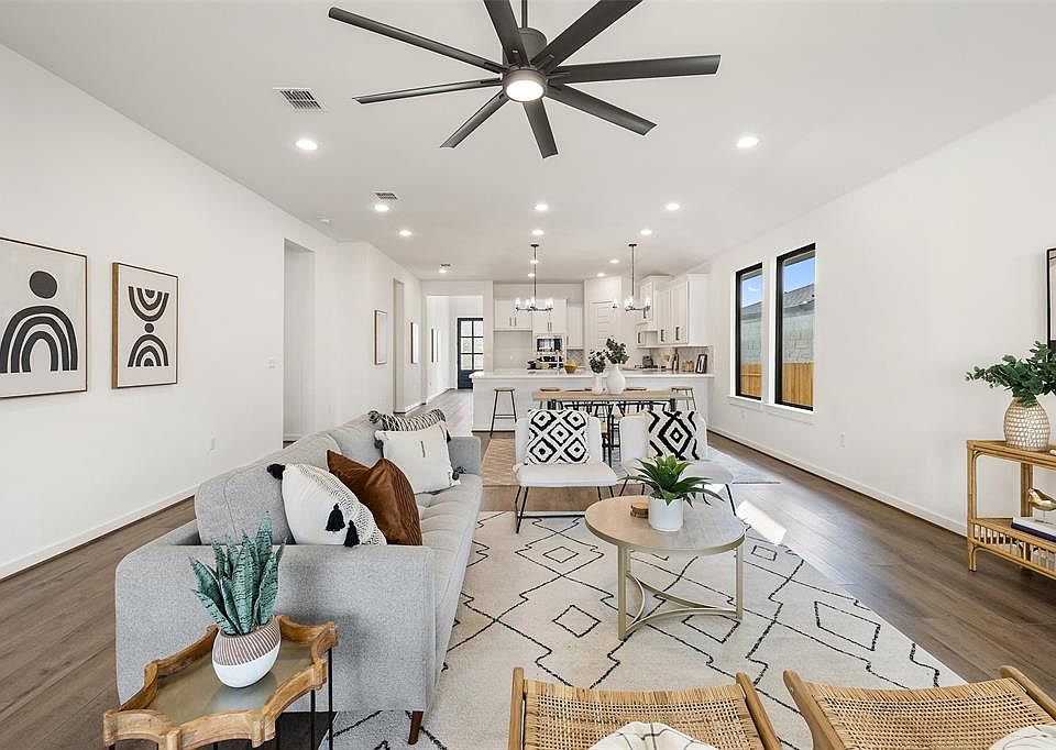 Welcome Home! This spacious and beautifully designed one-story 3-bedroom, 2-bathroom house offers the perfect blend of comfort and elegance.As you step inside, you'll immediately notice the inviting open floor plan seamlessly connecting the living, dining, and kitchen areas. The kitchen is a chef's delight, featuring sleek stone countertops that provide ample workspace, a central island and spacious cabinets for maximum storage. The LVP floors add warmth and charm throughout the main living area.The primary bedroom is a true sanctuary of comfort, complete with a spacious walk-in closet. The attached primary bathroom is a spa-like retreat with a dual vanity, large soaking tub, and a separate shower, allowing you to unwind and relax.Step out to your covered patio and private yard, creating your own outdoor oasis. Whether you enjoy al fresco dining, hosting barbecues, or want to unwind in the tranquility of your outdoor space, this backyard has it all.But the perks of living in Easton Park don't end at your doorstep. This wonderful community offers many amenities, including scenic walking and biking trails, a pool for refreshing swims, a full exercise room for your fitness needs, and a lounge and game room for socializing and fun with friends and neighbors. Plus, multiple parks within the neighborhood provide green spaces for picnics and relaxation.This Easton Park gem offers the perfect blend of modern living, comfort, and community amenities, making it the ideal place to call home. Just 15 minutes from Tesla, Downtown and Circut of the America's. Don't miss out on this incredible opportunity to live in one of the most desirable neighborhoods in town.