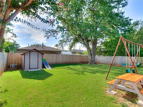 Back on market! Buyer changed mind before inspections. A MUST-SEE! This WELL maintained 3 bed, 2 bath, 2 car garage home is MOVE IN ready! COMPLETELY remodeled in 2013 including new duct-work. New hot water heater and sliding glass door installed in 2016. Storm shelter installed in 2019. SPACIOUS living area with VAULTED ceiling and gas fireplace. Open floor plan. HUGE master bedroom. Secondary bedrooms are generous sized with walk in closets. TONS of storage! Great curb appeal. Fully fenced large backyard with storage building. This home has easy access to NW Expressway, restaurants, and shopping! Don't miss out, schedule a showing today! Listing Agent is related to Seller.