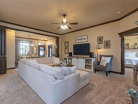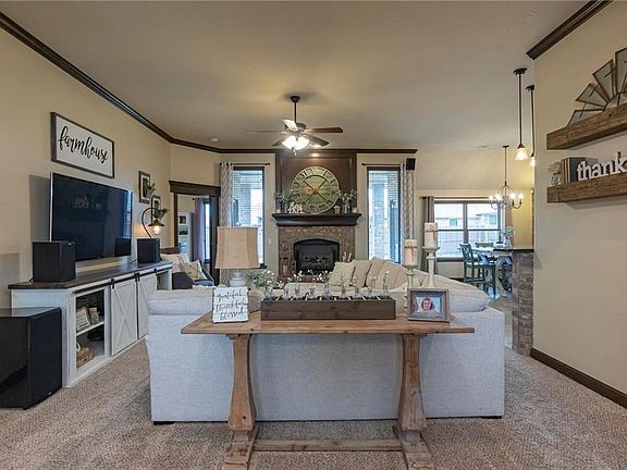 Absolute Beauty! This 4 bedroom, 2 bathroom show-stopper will take your breath away! You will fall in love with this home from the moment you walk through the front door. An open concept with crown molding throughout and top-quality features at every turn, including, gorgeous hardwood floors in the formal dining room, a spacious living room (with fireplace), large kitchen with an abundance of 3cm granite countertop space and custom cabinets, plus a stunning brick accent wall in the breakfast nook. The master suite boasts of a recessed ceiling with crown molding and a master bathroom with a wrap around Australian closet and jetted tub. Shiplap graces the office and one of the bedroom walls with the perfect touch and every window has 2" wood blinds. The laundry room has extra space for all of your hanging and folding needs, not to mention a built-in sink! The exterior features a 3 car garage, sprinkler system, 6ft wood fence, and large covered patio. Come see it today before it's gone!