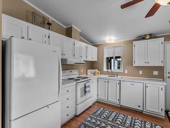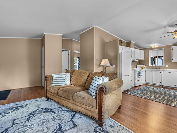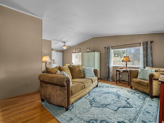 Immaculate move in ready home with a freshly painted interior, new countertops, new dishwasher and laminate flooring throughout. The yard around the home is hardscape landscaping for ease of maintenance and enclosed by a cyclone fence with powered gate for added security. The large front deck is covered and provides an ideal spot for viewing the wildlife and enjoying the privacy. Partial view of the 3 Sisters, mountain views from different points on the property. The roof is less than 3 years old. On a paved road.