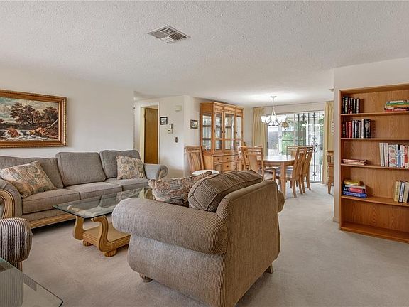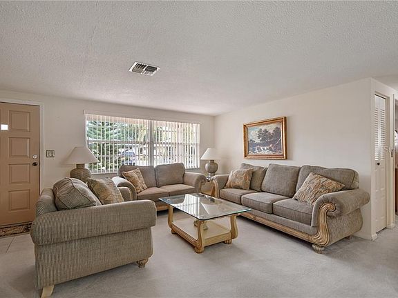 Welcome home! Seller can close quickly so that you can call this quaint and charming 2 bedroom/2 full bathroom home your's sooner than later! Enter this home into the formal living room with views directly through the formal dining room into the large, bright, covered Florida room/lanai along the back of the home. Enjoy fresh air with open, screened windows in the tiled room or, for more privacy, close the blinds and kick back with a good book. The back yard is ready for you to make it your own oasis that you can enjoy most any day of the year from the luxury of your Florida room. Sliding glass doors access the Florida room off of the formal dining room as well as the family room. For additional security, but also decorative, are the wrought iron gates over the sliding glass doors! The family room/kitchen/casual dining combination ensures that the chef of the family does not miss out on a thing. All appliances seen in the photos are included, in addition to the BRAND NEW washer and dryer in the garage as well as the additional refrigerator in the garage. There is a full bathroom with walk in shower that serves this area of the home. The garage features shelves for storing and work tables as well as a side door to the yard. The 2 bedrooms and other bathroom are located on the opposite end of the home, away from the active family room/kitchen area. Both bedrooms feature CEDAR LINED CLOSETS. This home is located near schools, shopping, dining, medical/healthcare and most anything you need. And don't forget the Florida style living with golfing just minutes away and, of course, gulf coast beaches! No shoveling snow in this neighborhood and enjoy the great outdoors nearly every day of the year! Don't miss out. Schedule your private showing today!