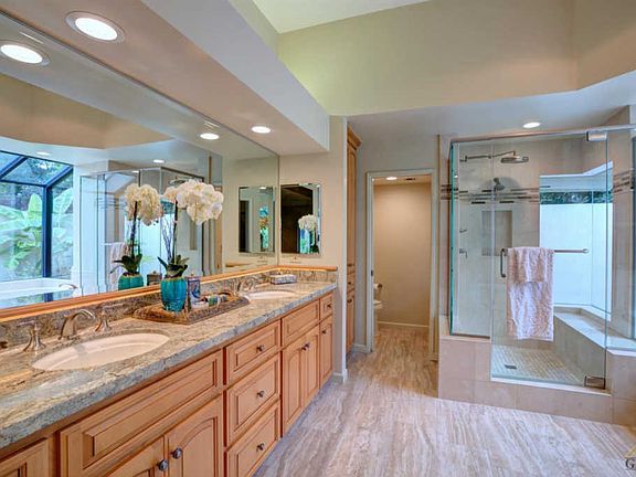 You have the RARE opportunity to own this Spectacular Home! As this is THE FIRST time it's offered to the public for sale. Just imagine how awesome your life would be living in Haggin Oaks! It's just few minutes to The Marketplace; offering some of the best shops & restaurants in town, and the nearby Farmer's Market will make your Sundays even better! There's SO many reasons why folks want to live in Haggin Oaks. And this Gorgeous Home tops them all! It's truly a unique home with dual sided aquarium between the formal living & family room. The master suite offers a seating area with cozy fireplace, and a beautifully remodeled master bath. In all, there are 4 roomy bedrooms & an office/workout room. Plus, there's an attached mother-in-law suite with private bath & kitchenette. The backyard is truly an oasis with lush landscaping, fruit trees, a massive covered patio with nice views of the custom pool & spa, also a padded sports court. Call Today, before it's sold!