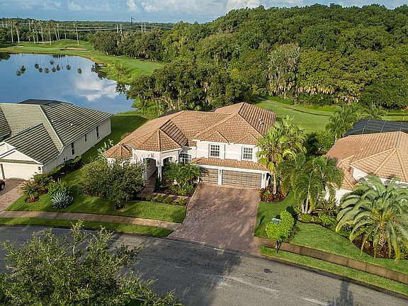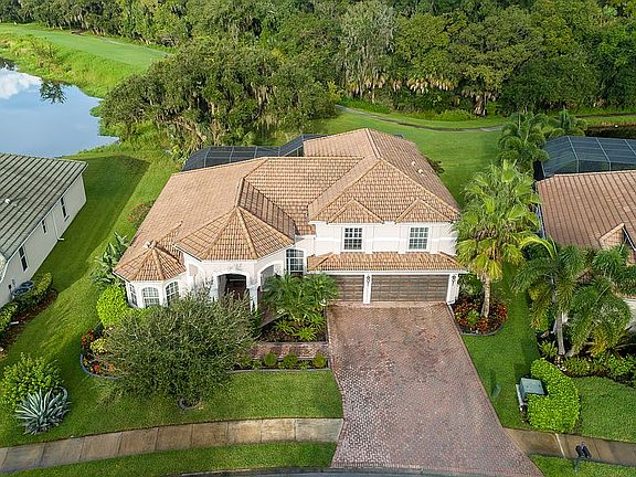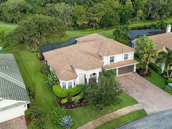 Are YOU prepared to view one of the most Impressive Homes in this price range in Manatee County? With close to 100K in after-market improvements, this home is a stunning reflection of an owner who cherishes pride of ownership, elegance, comfort, and convenience. Emerald Green Palm Trees, Colorful Bougainvillea & Exotic Florida foliage greet you for a Fabulous First Impression. A brick pavered pathway weaves through this visually stunning landscape to a Prominently Pillared Portico. Moving to the rear of the home, gorgeous brick pavers canvass a refreshed and updated salt water pool and spa that overlook a long view of a lake (not a small pond, mind you). Tropical preserves offer privacy while the golf course can be seen in the near distance. A beautiful oak tree, with outstretched limbs and shimmering green leaves, add texture to this fabulous view. This "trifecta" lake, golf course, & preserves would command a massive premium in the new home sale market today. The lanai, which encompasses the whole expanse of the backside of the home, offers a tremendous outdoor living experience. Wood paneling in the overreaching covered space provides a warm touch while a retractable awning provides shade during the summer months. Along those lines, the diminutive front elevations of today's new homes pale in comparison to this grand entrance. As you take your first steps through the glass inset double door entry, anticipation gives way to awe as you soak in the immensely satisfying manifestation of this owner's vision. The freshly painted interior gives way to an enduring Sophistication & Modern Flair that would make an interior designer blush with envy. The stylish warm grey tones of the floors & walls extend through the main areas of the home for a delightful continuity too. The voluminous ceilings are a signature highlight and extend the reach of soft natural for a brightly illuminated interior. The kitchen, which signifies the very essence of a "WOW" factor, showcases a large 2 1/2 inch thick granite counter with cabinet storage on all 4 sides of the island. Newer Stainless Steel appliances, a Wine refrigerator, Decorative recessed cabinetry, and a Gorgeous backsplash with movement round out the extraordinary kitchen. The main living area boasts four large windows and two large sliders that capture splashes of aqua blues from the pool and the rich green hues of the preserves. The first floor Owner's Retreat is spacious and features crown molding, plantation shutters, & large closets with a built in master closet system. The en-suite bath is simply striking with highlights that include a freestanding soaking tub and frameless shower enclosure. Moving on to the second level, the balcony enhances the open feel of this floorplan while the roomy bedrooms offer a private escape for both family & friends. The rear facing bedroom is a terrific spot for a den or office too. If I were to cover all of the features of this home, I would give the length of Leo Tolstoy's War and Peace a run for his money...so you will have to schedule an appointment to see the rest! Stoneybrook Golf & Country Club's star grows brighter as SR 64 continues its ascension as a primary gateway to I-75, Lakewood Ranch, shops and restaurants, and some of the world's best beaches. Amenities abound in the community, and include a recreational facility that offers a resort style pool, fitness, tennis, golf, & more!
