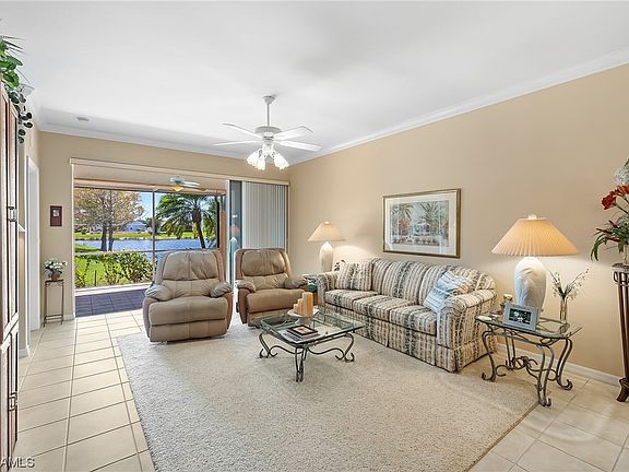 On the lake, southern exposure with a beautiful view! This 3/2/2 Villa unit is pristine and comes fully furnished. Tastefully decorated and turnkey. Eat in kitchen plus additional dining area for family dinners and easy entertainment. Colony lakes is a great location, close to Fort Myers Beach and Sanibel. It is close to restaurants, shopping and entertainment facilities. The airport is about a 20 min. drive. Hospital and medical facilities, such as Healthpark, are near by. This community has a heated pool, clubhouse and exercise room. HOA fees are very reasonable.