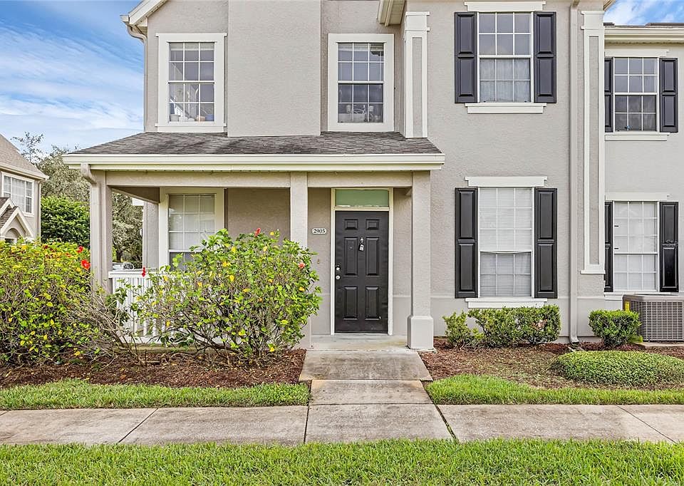 First floor 3 bedroom with covered porch and pond view. Newly added vinyl flooring, AC July 203 and WATER HEATER July 2023. Location couldn't be better, highly sought after area with highly rated schools, easy access to 417 and 528, onlyminutes away from the airport and Lake Nona, shopping and dining and so much more. Well maintained community with gym, pool, and clubhouse on site. Water and sewer is included with hoa. Great split bedroom with roomy master bath large tub and walk in closet.