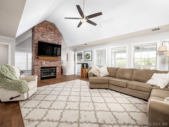 This is a well maintained 4 bed/2.5 bath/3 car garage home with new paint, carpet and patio! Gorgeous farmhouse design throughout the home. Stainless steel appliances, large open living room with high ceilings, double sided fireplace, gated dog run and raised flower beds! The home is located within walking distance to Owasso High School and close to all the in town shopping!