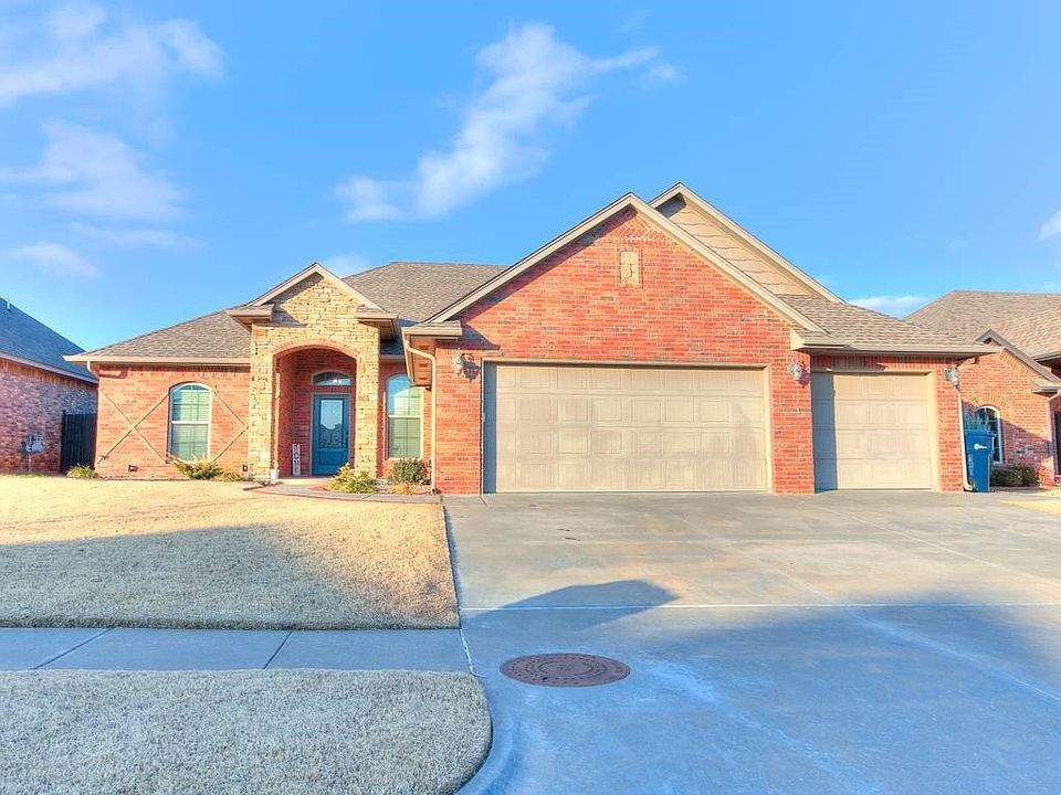 FANTASTIC home in Chapel Creek, built by Jason Powers! Featuring many beautiful upgrades throughout! Stunning kitchen with gorgeous granite counters, pristine cabinetry with pull out spice racks, moveable island, huge breakfast bar that is open to the large living room. Tall ceilings, crown molding, beautiful wood flooring, gas log fireplace, with stacked rock surround and gorgeous wood mantle. This home boasts of a very desirable split floor plan. 4 bedrooms & 2 bathrooms or 3 bedrooms and an office, very spacious! The huge master has large bathroom with a remodeled shower and bath surround, an enormous closet and a separate door leading out to the massive back patio, which is perfect for entertaining family & friends! The 3- car garage includes an in-ground storm shelter. The pristine yard also includes a sprinkler system. This neighborhood features a neighborhood pool and is close to the turnpike, shopping and restaurants! Award winning Piedmont schools!!