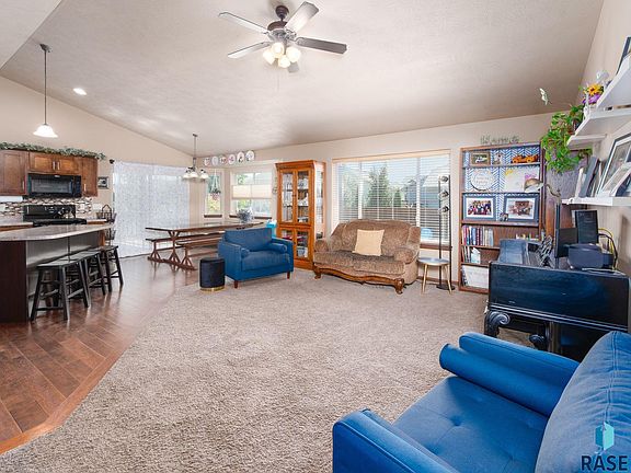 Come check out this open concept 4 bed, 3 bath ranch located on the west side of Sioux Falls. Large entry opens into living room with vaulted ceilings. Kitchen features center island, tiled backsplash & pantry with access to the covered deck and fenced in yard. Main floor laundry and large landing space off the garage entrance helps keep everything organized. Primary bedroom features double vanity bath plus walk in closet. Basement family room is huge! Large windows throughout the home allow for tons of natural light! Garage also has and additional 10X10 space for additional storage or workshop. New roof & exterior paint 2019, new fence 2020, radon mitigation installed 2021. You do not want to miss out on this home!