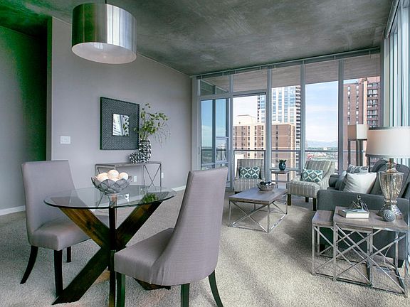 The Spire Unit 2608 Experience the city at your doorstep and a million dollar view all your own. The residence at Spire #2608 offers an extraordinary vantage point of Denver and the Front Range - all framed perfectly with the floor to ceiling windows that wrap around this distinctive corner unit. Here, light is the ultimate canvas and paintbrush, shifting from an amazing daylight panorama to a more tranquil blanket of city lights that unfolds every night. The residence is beautifully finished with a stunning kitchen featuring granite, stainless steel and distinctive cherry wood cabinetry. The Master Suite features an oversized walk in closet and 5 piece bath while the second bedroom is designed with a Murphy bed and built in projection screen for your own home theater. The impressive architecture style resonates with a vibrant urban ambiance, complimenting your own special design ideas to define your own personal lifestyle. Enjoy magical sunsets over the Rocky Mountains from the full sized balcony (one of the largest in the building) and then retire inside to see the city lights come alive with vibrant colors. This home truly has all the best of city living! 1 year lease or longer. For more details see the website at www.2608atSpire.com