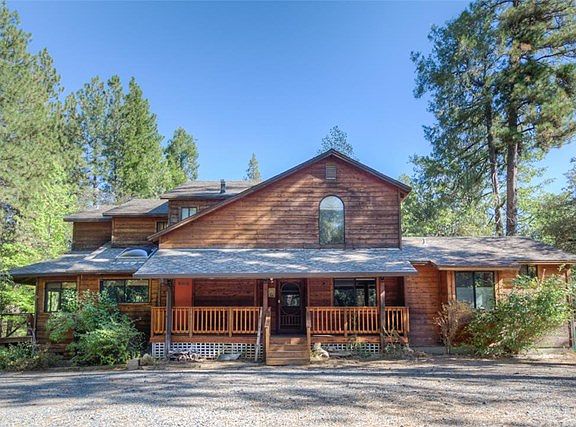 You'll find plenty of room to roam indoors and out with this spacious 3 bed/2.5 bath home on 17+ acres in a beautiful wooded setting surrounded by Ponderosa Pines. Inside you'll find generously proportioned rooms, including a formal dining room and large office/study, with lots of windows and skylights to fill the home with light and the enhance the beauty of wood finishes throughout, including hickory plank flooring in the living area, fir wood paneled walls & ceilings, and wood baseboards and trim. The kitchen has wood cabinets and butcher block counters, with its own breakfast nook. A covered front porch and wrap around deck in back allow plenty of room for outdoor living. The wooded acreage has rolling terrain and there are several trails for walking or riding. There is also a separate shop building with power, and a wood shed.