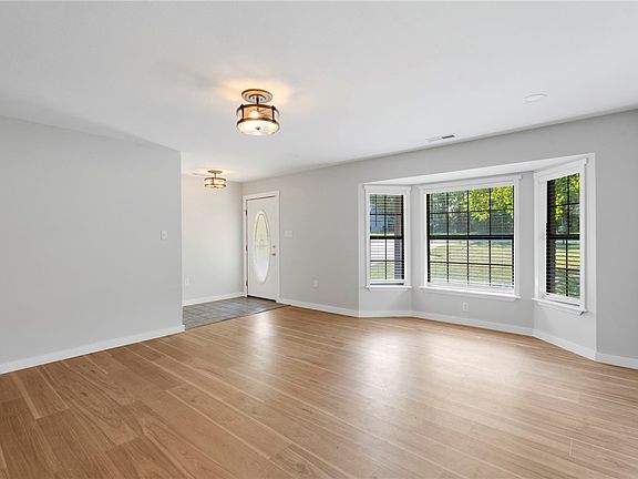 Wooded backdropIn-ground poolExpansive deckBrick wood-burning fireplaceLvp flooringFenced yard