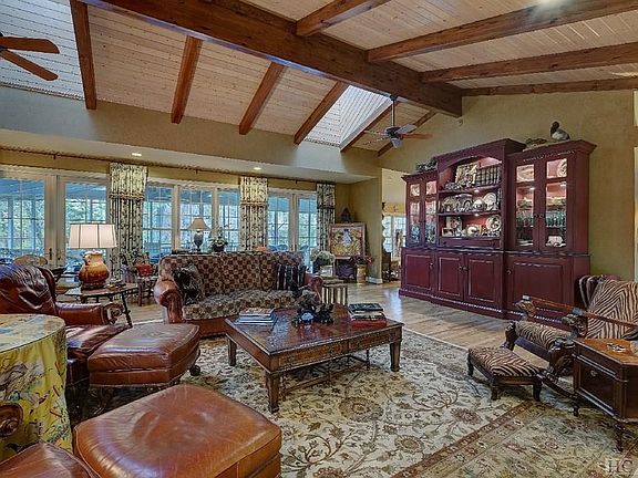 Immerse yourself in this tranquil lakefront setting and live in this thoughtfully designed home situated on one of the most desired streets in Highlands Country Club. Quiet and secluded with a long driveway, the home is barely visible from the road. This idyllic retreat, is designed to offer views of nature, mature landscaping and tranquil views of the lake from almost every window. An open floorplan & quality features, including gleaming oak flooring, native stone fireplace, tall windows and a vaulted ceiling lined with timber to add a dramatic tone to the living area The quietly sophisticated ambience of the formal dining room sets a benchmark in gracious living whether you are enjoying a candlelit dinner for two or enjoying the company of friends. A spacious, well-appointed kitchen with beautiful cabinetry, spacious granite countertops and tile backsplash, designed to suit all occasions from entertaining guests to relaxing after a day at work or play. The orientation of the home ensures natural light is maximized and offers the flexibility of additional living spaces, with a keeping room off the kitchen complete with gas fireplace, stunning carved wood bar and casual dining area. Step out of your kitchen and living area to a welcoming deck overlooking the lake where there is plenty of space to entertain a crowd or just spend a quiet morning with a cup of coffee and a good book. This well-planned house allows a seamless flow between indoors and outdoors, ideal for entertaining. The luxurious master suite has 5 star written all over it. His and her closets with handsome built-in wardrobes and a recently remodeled, lavish master bath. A two-car garage is connected to the house for easy access with packages. The spacious one-bedroom guest house above is so comfortable that guests will want to stay forever. Beautiful gardens are an ideal backdrop for the outdoor living areas which includes a lovely yard, a firepit to enjoy on those cool summer evenings.