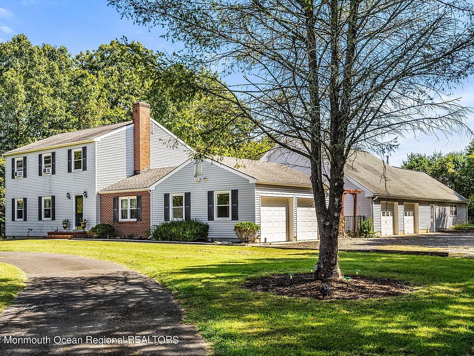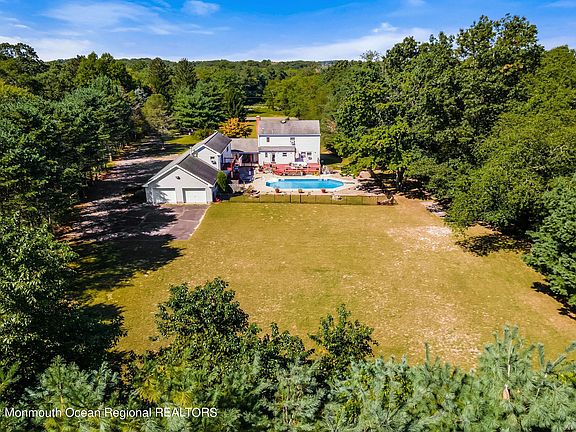 This sunny center hall colonial features hardwood floors, large rooms and easy entertaining! The sliding doors offer easy access to the backyard oasis! This expansive property has a stunning saltwater pool and an additional garage with carriage house/in-law suite. The private space offers a kitchenette as well as a full bathroom. Car enthusiasts, work from home, so many possibilities with this incredible property!