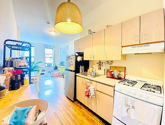 Huge Sun Filled floor-thru 1 Bed in Williamsburg. Large open layout with living room, dinning room and large separate Kitchen. The bedroom can easily fit Queen size bed and furniture and a desk. New Bathroom featuring designer fixtures, Large shower with beautiful porcelain tiles. Well maintained building with secured entry and Video intercom. Walk to the L train Apartment Amenities * Large Bedroom * Eat in Kitchen * Living room * New Designer Bathroom * High Ceilings * Walk In Closets Building Amenities * Secured Entry * Video Intercom * 24 Hour Security Surveillance * Super On Call * 1 Block from L Train ** There is a broker fee amounting to 1 month rent