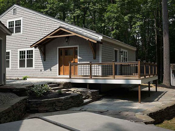 Lovely Quechee cottage with wonderfully completed renovation. This lovely hidden gem appears cottage-like from the exterior while the interior boasts a spacious open concept great room with incredible natural light. The smart redesign and reimagining of this property maximizes the livability and comfort of this property while maintaining privacy. Custom kitchen thoughtfully equipped and custom baths for master and guest rooms make this stunning property an absolute must see. Beautiful approach and handsome post and beam entry. Lovely stone work and gorgeous yard space.